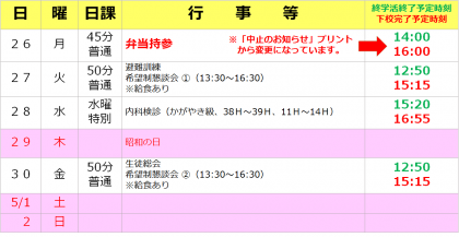 4/26(月)からの予定