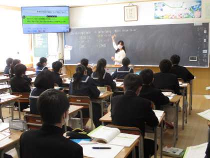2年生の授業の様子を紹介します。上から25H理科、26H数学、27H英語です。