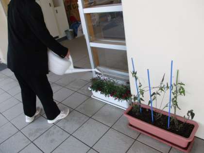 生徒玄関では、生活向上委員会のあいさつ運動、ボランティア委員会の花の水やりが行われていました。今日は、午後から希望別懇談会が実施されます。下校完了時間は、15:15です。
