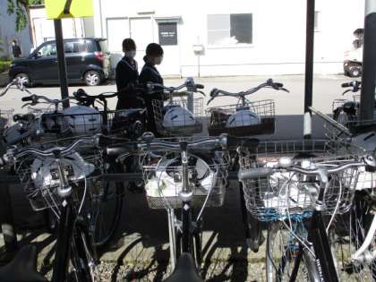 今日は、とてもさわやかな天気になりました。生活向上委員会の生徒が自転車の鍵かけを呼びかけていました。今日の下校完了時間は17:30です。
