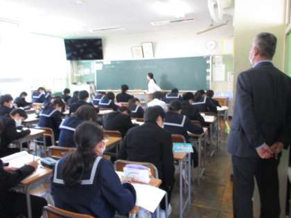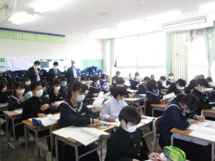 午後から小中連絡協議会が開かれ、校区の小学校の先生方が本校を訪問されました。6限は1年生の授業を参観されました。写真は13Hの数学の様子です。
