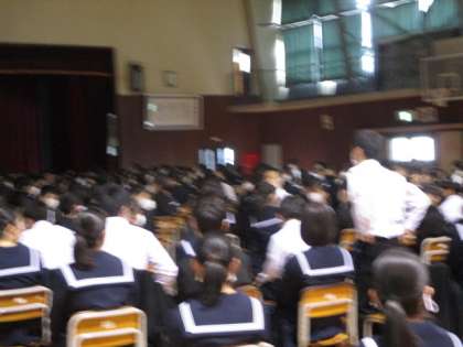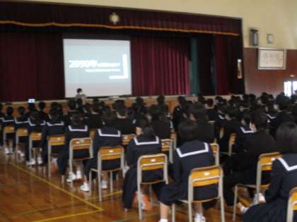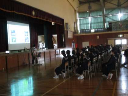 5月6日(木) 3年生 学年集会 公開日 2021/05/10 更新日 2021/05/10 全学年 3年生は5限に今年度の総合的な学習の時間の取組について、先生からの説明がありました。今年度は「国際社会を生きる」をテーマに一人一人が関心をもった具体的な課題を設定して追究していきます。最後にタブレットパソコンを用いてスライドにまとめ、発表する予定です。今日は先生が手本を示すためにプレゼンテーションを行いました。