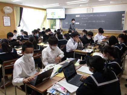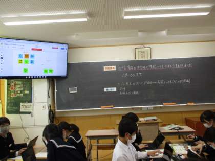 今日の5限、29Hの技術の時間にタブレットパソコンを使った授業が行われました。学習課題は「生物育成のサイクルを持続させるにはどうすればよいか」です。