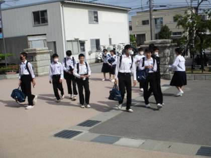 今日は朝から少し暑く感じました。昼には気温が高くなりそうです。今日の下校完了時間は、17:00です