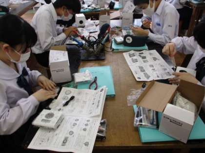 5月24日(月) 授業風景2 公開日 2021/05/24 更新日 2021/05/24 全学年 38Hの技術の時間にエコキューブラジオの製作をしていました。災害時にも使えるようにハンドルを回すことで電気を起こし使用することができます。また、スマートフォンをBluetoothで接続して音を出すことも可能だそうです。