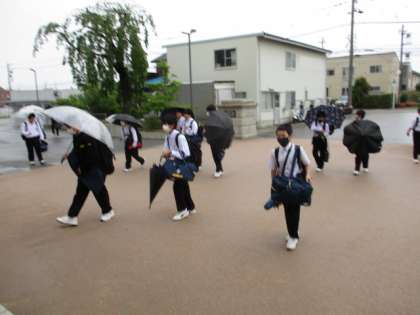 今朝は小雨になりました。玄関には新たなプランターに花の苗が植えられています。どんな花が咲くか楽しみです。今日の下校完了時間は18:00です。