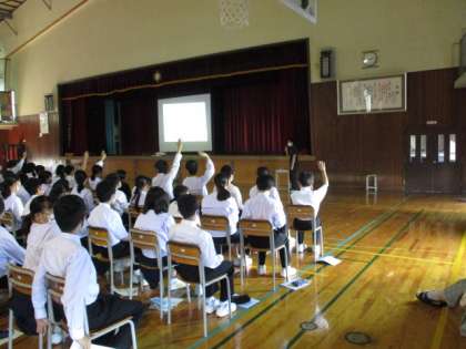 1年生は31日(月)に砺波で校外学習を実施します。6限は、事前学習として砺波青少年自然の家の方から自然の家で行うスコアオリエンテーリングとイニシアティブゲームの説明をしていただきました。当日が楽しみです。