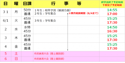 5/31(月)からの予定