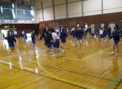 4限に21H〜25H、5限に26H〜29Hでクラス対抗のドッチピー大会(ドッヂボールのルールでボールの代わりに専用のフリスビーを用いる)が行われました。とても大きなきな盛り上がりを見せました。写真は4限の様子です。