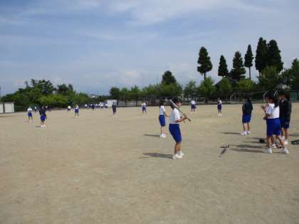 6限、グラウンドでは26・27H女子が体育でソフトボールを行っていました。晴天の下、暑さに負けず取り組んでいました。
