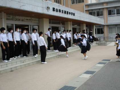 6月8日(火) 登校風景 公開日 2021/06/08 更新日 2021/06/08 全学年 今朝は曇りになりましたが、気温は高くなりそうです。玄関では男子バスケットボール部が挨拶運動をしていました。今日の下校完了時間は18:00です。