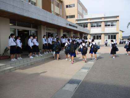 6月11日(金) 登校風景 公開日 2021/06/11 更新日 2021/06/11 全学年 今日は暑くなりそうな1日です。ソフトボール部が挨拶運動を行っていました。今日は1日学校公開日です。生徒玄関に学年ごとに受付がありますので、受付のうえ、校内にお入りください。また、マスクの着用、手指の消毒にご協力をお願いします。今日の下校完了時間は18:00です。