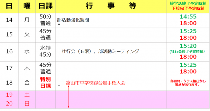6/14(月)〜6/20(日)までの予定は、以下の通りです。