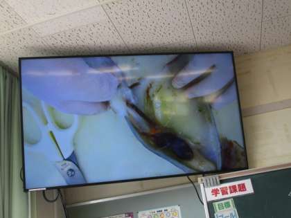 教室左上のモニターにもその様子がはっきり拡大されて映し出されていました。