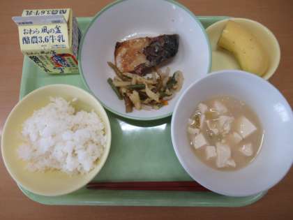 ごはん 牛乳 さばの照り焼き 茎わかめのきんぴら 豆腐のみそ汁 バナナ