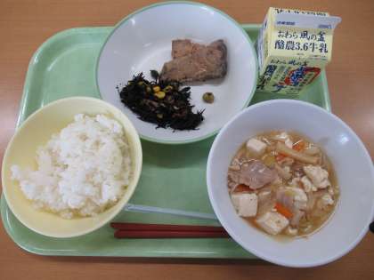 ごはん 牛乳 ひじきのソテー ふくらぎの西京焼き 豆腐の野菜あんかけ