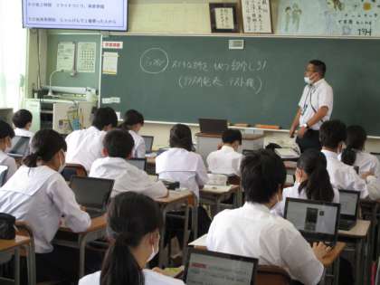 6月21日(月) 授業風景1 公開日 2021/06/21 更新日 2021/06/21 全学年 「学力向上週間」に合わせて授業もしっかり取り組みます。3限の様子です。写真上から19H国語、18H社会、16H数学です。