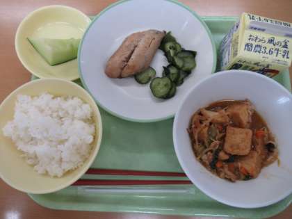 ごはん 牛乳 酢の物 鰆の幽庵焼き 厚揚げの味噌炒め メロン