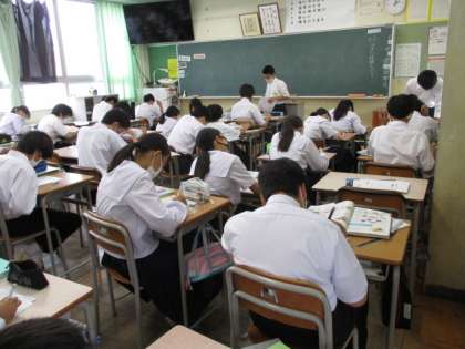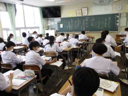 1年生5限の授業の様子です。テスト範囲が終わり、自習しているクラスもありました。写真は上から11H社会、12H理科、13H国語です。