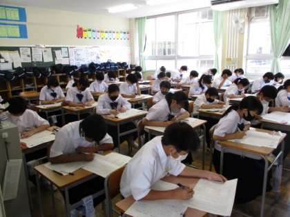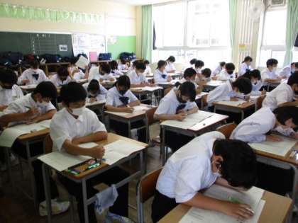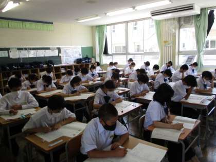 今日から期末考査が始まりました。2限目の各学年1組から3組の様子です。1年生は国語に取り組んでいます。写真は上から11H、12H、13Hです。