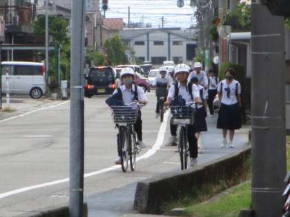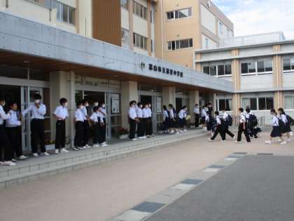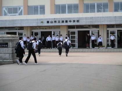 今日は気温が高くなりそうです。登校時のあいさつ運動が再開しました。サッカー部が元気にあいさつをしています。今日の下校完了時間は17:30です。