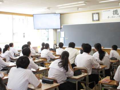 生徒会執行部の企画でSDGsについて学び考えることで身近な生活で活用できるようになることを目指す「SDGsを学ぼう!」という企画が始まりました。今日は、速星タイムの時間を利用して全校でSDGsに関するビデオを視聴しました。
