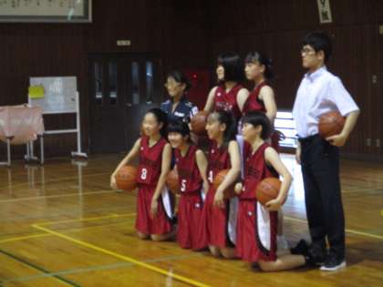 今日も放課後、3年生のアルバム用の部活動写真の撮影が行われていました。写真は女子バスケットボール部とバレーボール部の様子です。