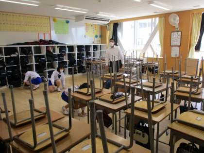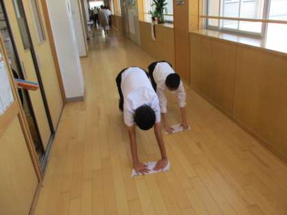 清掃時間の様子です。今日は午後から保護者懇談会があるため、3限後に行いました。みんな暑い中でも頑張って清掃していました。