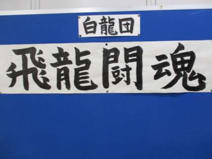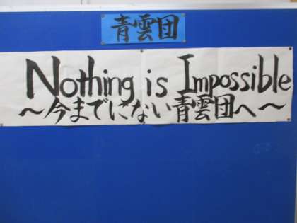 玄関付近に体育大会の各団ごとのスローガンが掲示されています。