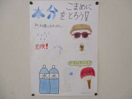 部活動中は、こまめに水分補給をしましょう。今日も保健委員会の掲示物を紹介します。