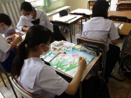 午前中の部活動の様子です。美術部の生徒がそれぞれの課題に取り組んでいます。