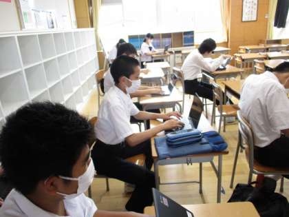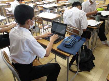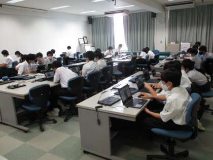 コンピュータ部の様子です。タイピングのソフトを使って、練習する生徒の姿が見られました。