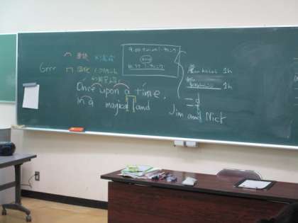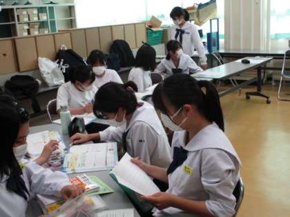 英会話部の様子です。英語劇の準備をしています。