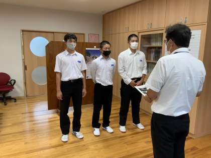 今日は校長室で古野校長先生から、お褒めの言葉をいただきました。写真の左から、メンバーの池田遥翔くん、上原璃久くん、神永悠希くんです。