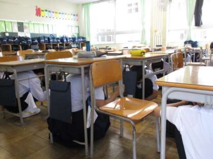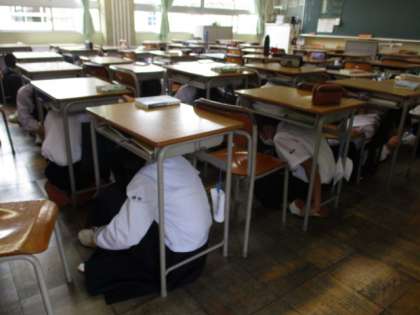 朝学活後の速星タイムの時間に全校でシェイクアウト訓練を行いました。地震を想定して、頭や身体を守るために机の下に入ります。実際の地震が起きた時にも自分の身を守るための行動がすぐにできるようにしてほしいと思います。