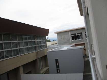 現在の体育館とB棟校舎の間から見ると、B多目的ホールから新体育館に繋がる通路の建物が見えました。