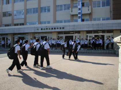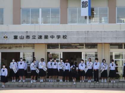 今朝は晴れて気持ちのよい朝になりました。玄関前での選挙活動は今日が最後になります。今日の下校完了時間は15:50です。