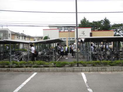 今日は曇りの朝になりました。男子卓球部があいさつ運動を行っています。今日から部活動を再開します。