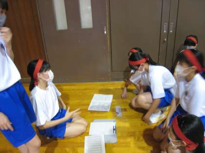 リーダーを中心に相談します。中学校での初めての体育大会に向けて頑張ります。