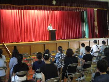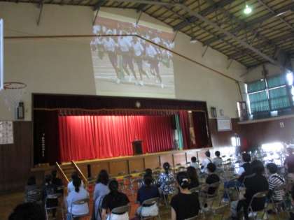 授業や行事の様子はスライドを用いて行いました。また、部活動担当から速星中の今年度の部活動の成果や特徴について説明しました。