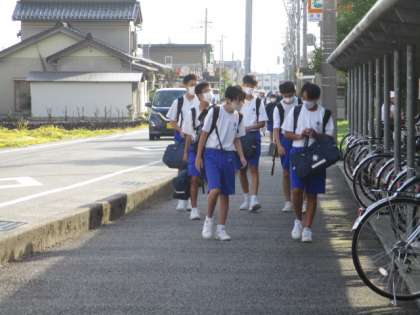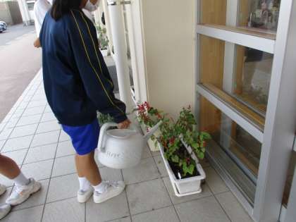 今朝は登校時は快晴になりました。今もボランティア委員会の生徒がプランターの水やりを続けています。今日の下校完了時間は15:40です。