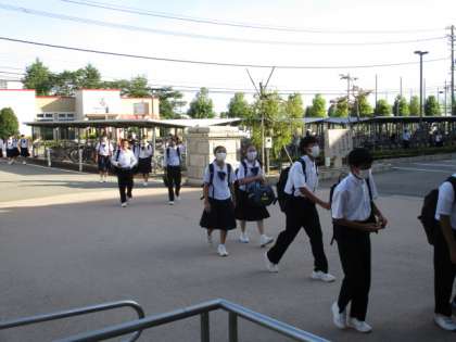 今朝は晴れましたが昨日に続き暑くなりそうです。今日の下校完了時間は14:35です。