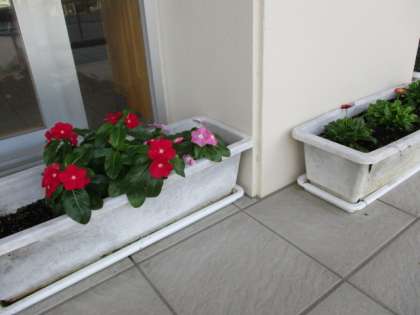 今朝は晴れて気持ちのよい朝になりました。プランターの花もきれいです。今日の下校完了時間は17:30です。