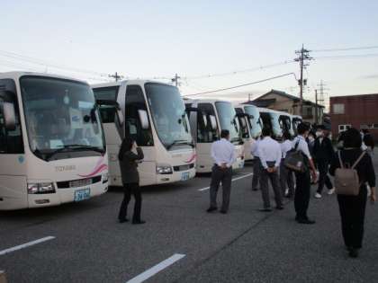 朝6時30分、予定通り3年生は修学旅行代替旅行に出発しました。3クラスずつ、長野県コース、新潟県コース、福井県コースにそれぞれ向かいます。最高の思い出をつくってきてもらいたいですね。