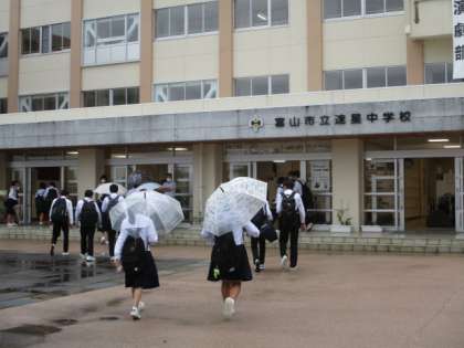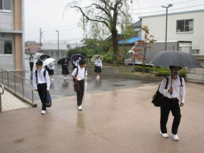 今日は朝から雨が降り続いています。気温も低くなりました。今日の下校完了時間は17:00です。