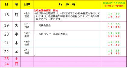 10/18(月)からの予定