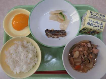 牛乳 ごはん かぶの色どり いわしの生姜味 大根と鶏肉のうま煮