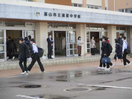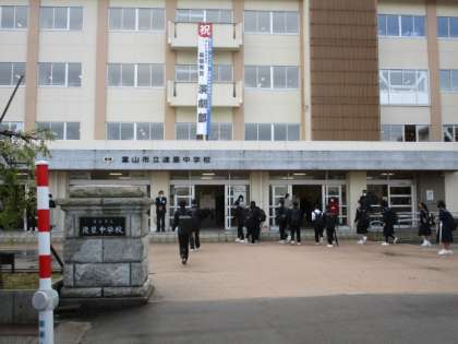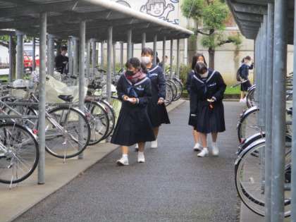 今朝は雨が降っていましたが登校時には晴れてきました。今日も生活向上委員会が自転車の鍵かけチェックを行っています。今日の下校完了時間は16:55です。