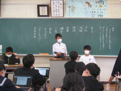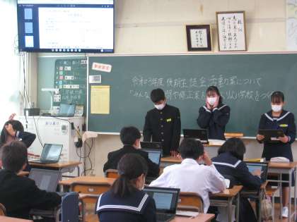 本年度、生徒会活動計画案は紙ではなく、各自タブレットに表示して確認しています。17H、28H、19Hの写真です。