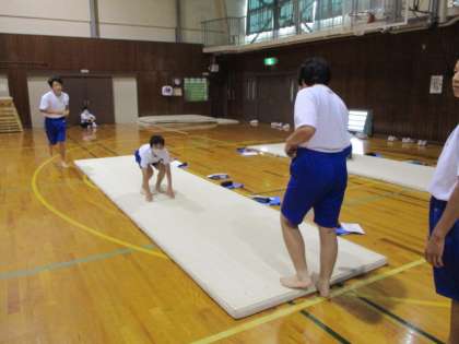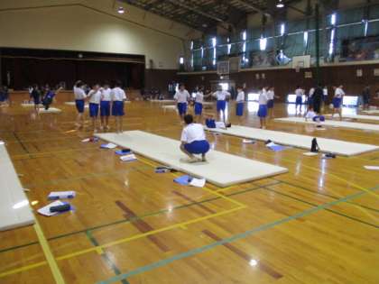 5限、15Hと16Hの体育の授業です。男女ともにマット運動を行いました。